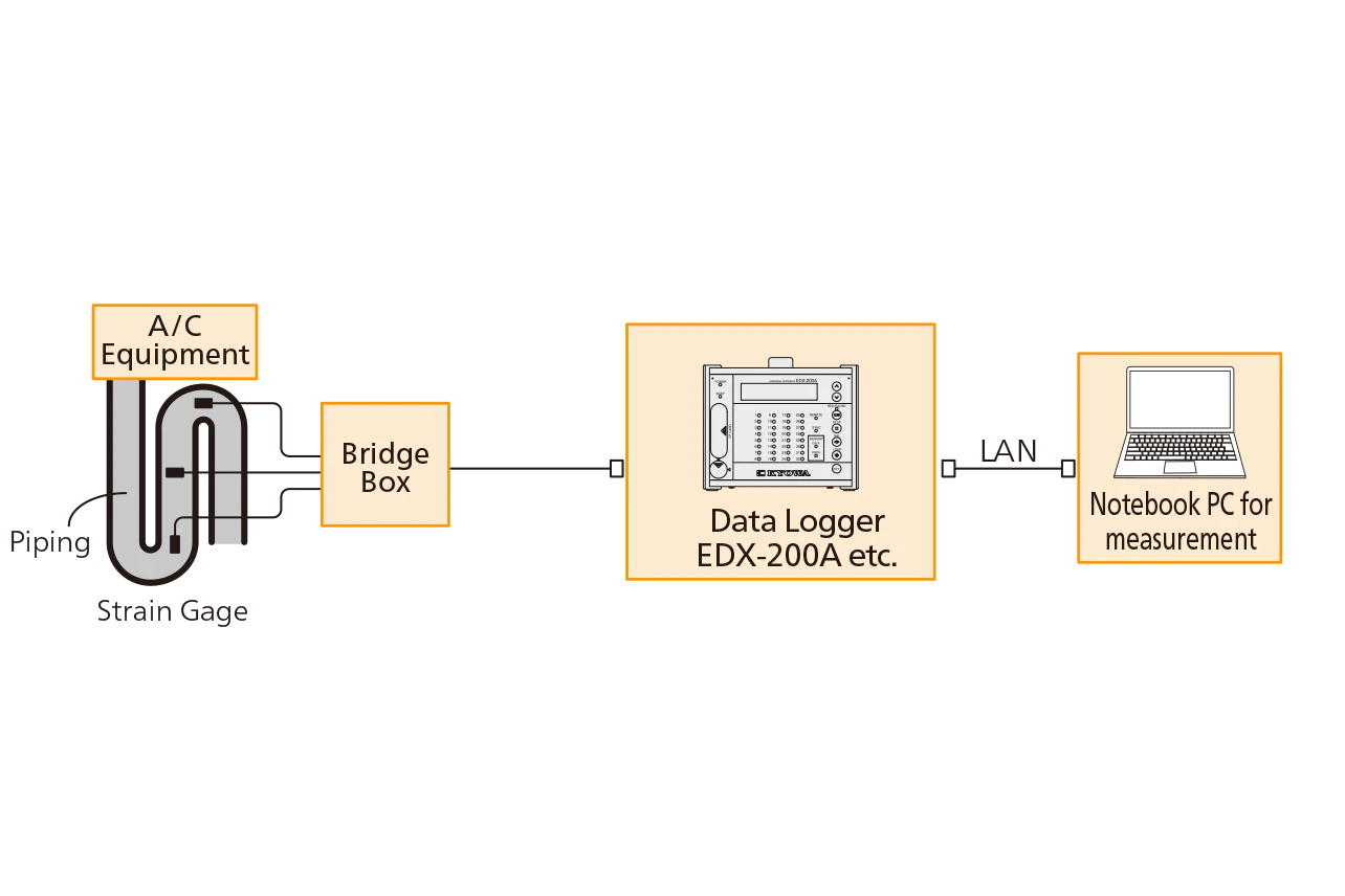 - Pipe Stress Measuring SystemThis system is used to measure stress on piping caused by vibration from an A/C compressor, etc.
