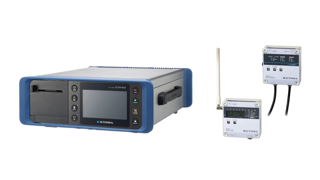 ひずみの大きさが時間的にゆるやかに変化する現象を測定する場合に使用します。 ひずみゲージで検出された微小電圧信号を高性能な電子回路で増幅し、デジタル指示器に表示させてひずみ値を読み取ったり、プリントアウト、ストレージにデータを保存することができる測定器です。静ひずみ測定では、大型構造物の載荷試験の例にみられるように、測定点が数百に及ぶような大規模な計測が多くあります。このような多数の測定点を高い精度で計測するため、スキャナで測定点を順次切り換えて測定することが多いですが、近年は同時サンプリングでも高精度に計測できるものも登場しています。