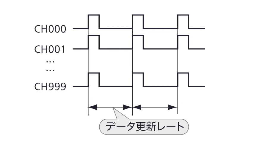 多数の測定回路で全チャネルを同時に測定する方式です。各チャネル間の同時性が確保されているため、動的事象の計測に適しています。
