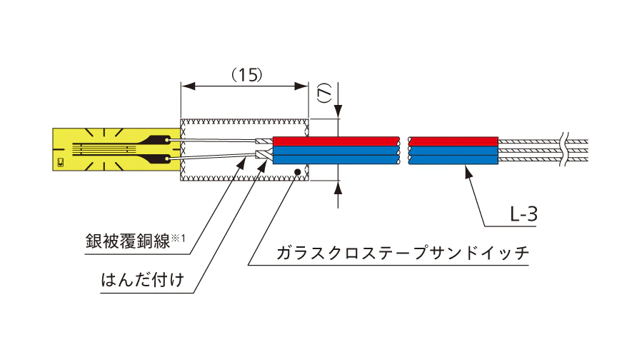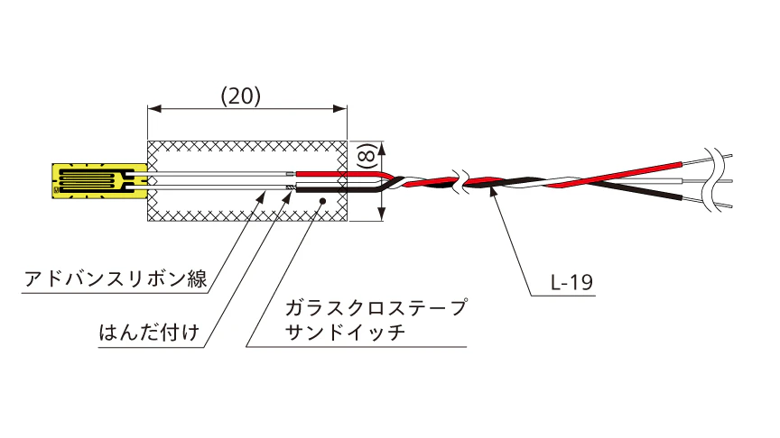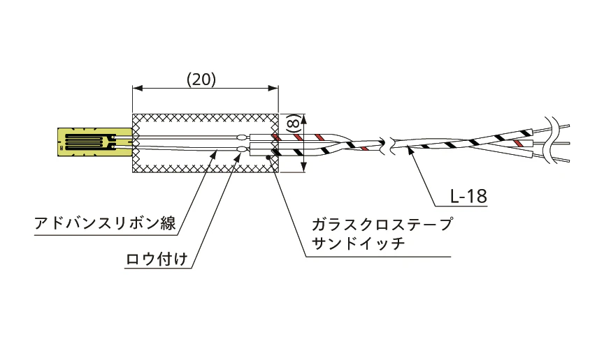 一部の種類のゲージリード部分は、絶縁・補強のためにガラスクロステープで挟んだり巻き付けたりしています。