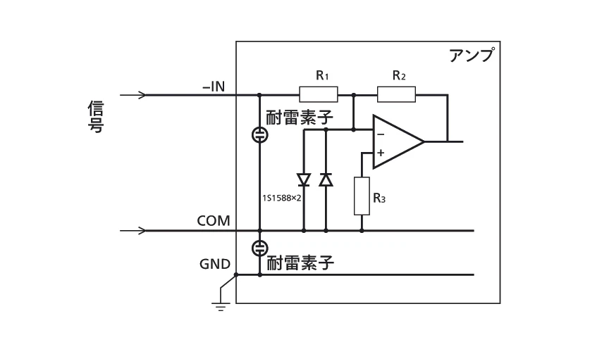 (2)アンプ内に耐雷素子2個とダイオード2個を入れる場合