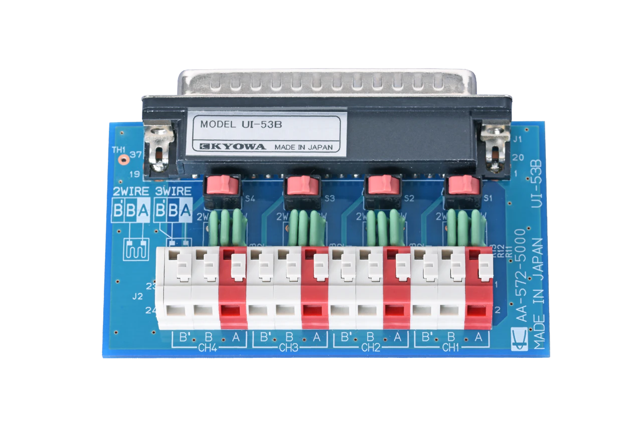 UI-53B1ゲージ用ブリッジアダプタEDX-10シリーズ用のひずみゲージ入力アダプターです。対応ひずみゲージ結線法は1ゲージ法です。
