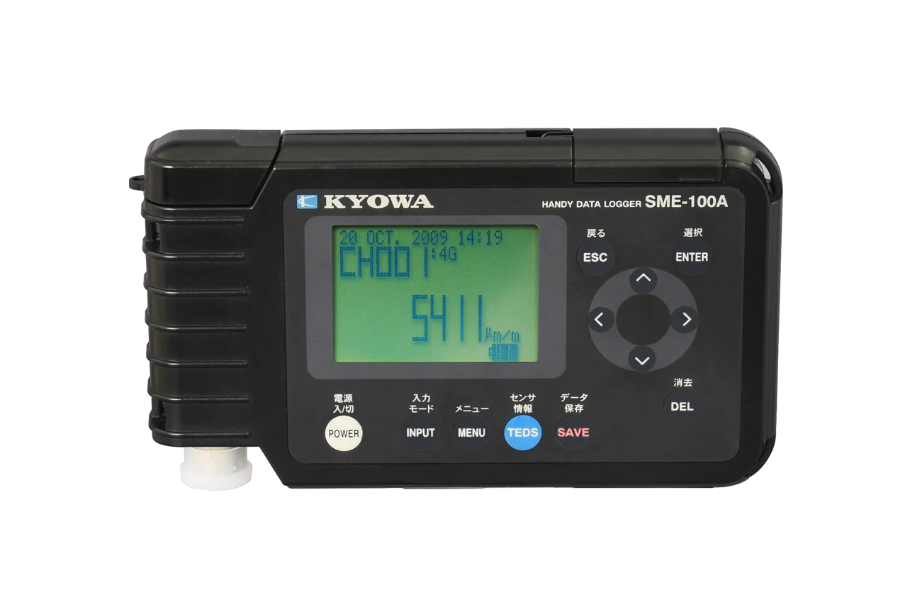 SME-30A/31A/100A/101A ハンディデータロガーストラップ付属で、フィールドでの点検やセンサ設置時の確認作業に適したハンディ測定器です。また、付属の入力ケーブルを使用すれば、ひずみゲージも簡単に接続できます。 SME-100A/101Aは、ネットワークターミナルボックス NTB-100/200シリーズとの接続で最大33チャネルの計測に対応しています。 チャネル数:1(最大 33) チェック機能:入出力抵抗,絶縁抵抗購入のお問い合せ カタログで見るSME-30ASME-31A ACアダプタ対応SME-100A NTB-100/200シリーズ接続対応SME-101A ACアダプタ対応,NTB-100/200シリーズ接続対応SME-30A/31A/100A/101A SME-30ASME-30A/31A/100A/101A SME-31A ACアダプタ対応SME-30A/31A/100A/101A SME-100A NTB-100/200シリーズ接続対応SME-30A/31A/100A/101A SME-101A ACアダプタ対応,NTB-100/200シリーズ接続対応取扱説明書SMEシリーズ 取扱説明書(1.8 MB)SMEシリーズ SDカードを使用したバージョンアップ方法(97.6 KB)ソフトウェアバージョンアップSME-30A/100Aシリーズ ファームウェア(269.18 KB)主な適合アクセサリP12-7 - 4心テストクリップ,シールドミノムシクリップD-Sub9ピンメス - D-Sub9ピンメスACアダプタ組み合わせ推奨品ネットワークターミナルボックス