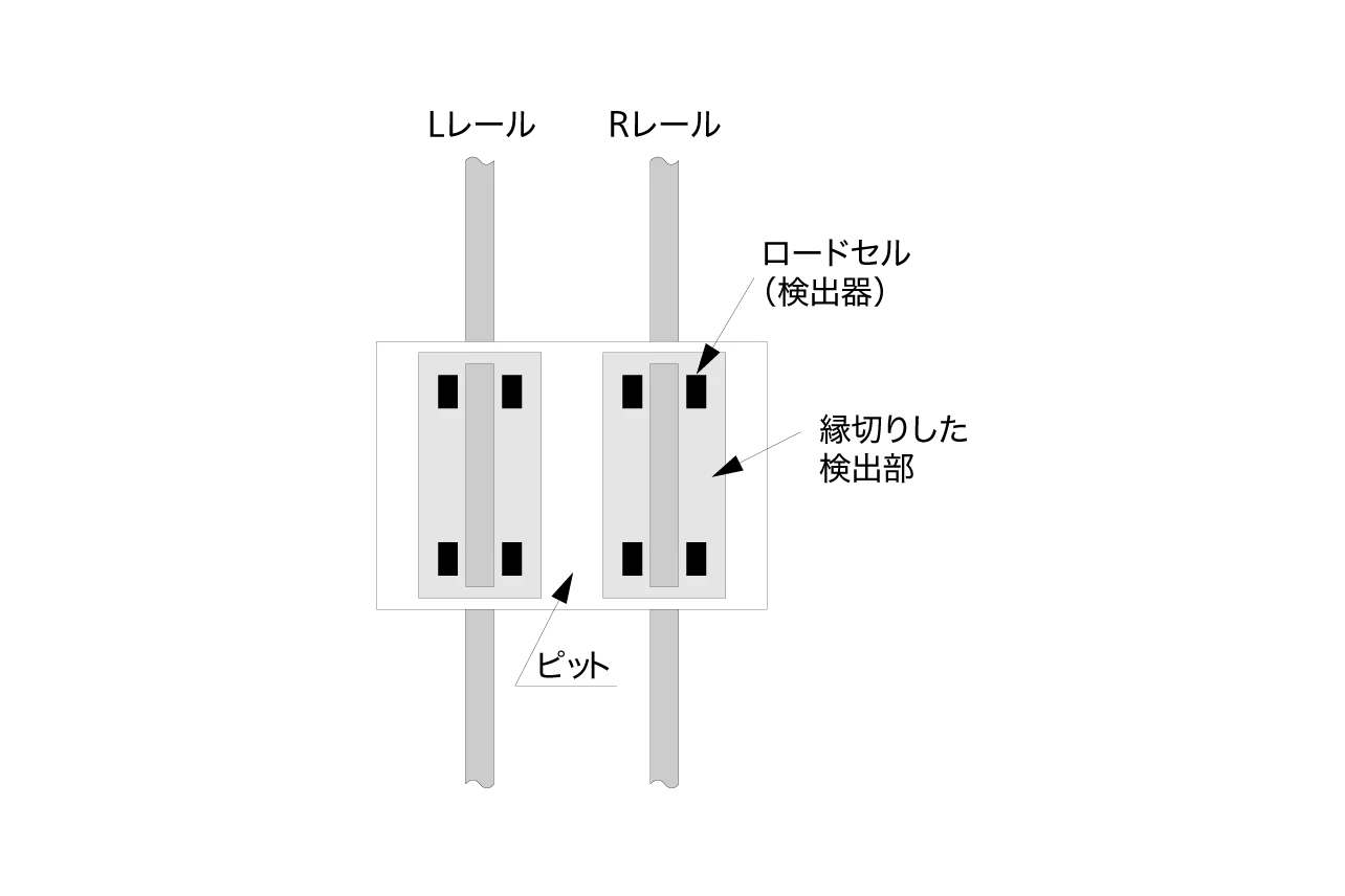 車両輪重測定装置鉄道車両(機関車、客車、貨車)の輪重を簡便に計測する装置で、輪重の不釣り合いを正確に測定することができる装置です。乗り心地の改善や脱線の防止など安全運行のために利用することができます。 ロードセル式(縁切り方式)の設置事例※仙台市地下鉄車両基地購入のお問い合せ カタログで見るせん断ひずみゲージ式ロードセル式(縁切り方式)ロードセル式(乗り上げ方式)せん断ひずみゲージ式レール側面に直接ひずみゲージを接着し、輪重によるせん断ひずみから輪重値を求めます。車両がレール上を低速(15 km/h以下)で走行、または停止して左右の輪重値を測定する装置で、ひずみゲージは左右のレールにそれぞれ4枚貼られています。また、偏荷重がかかっても測定誤差が生じないように考慮されています。出力は増幅されてAD変換してパソコンに取り込み、測定日時、輪重値、左右軸重比、総重量などが表示、印字されます。(オプションにて横圧を測定し脱線係数(Q/P)を計算する事が可能です。)ロードセル式(縁切り方式)ピット形式の装置で、左右のレールを約120 cm縁切りし、その下にロードセルを複数台設置して輪重値を測定するものです。小型ロードセルを4個使用した測定台(センサ部)、接続箱、データ処理装置、パソコン、プリンタで構成され、高い精度で輪重値を測定することができます。輪重出力はひずみアンプにより増幅され、AD変換器を通してパソコンに取り込み、測定日時、輪重値、左右輪重比、総重量などが表示され、プリンタにも同様な数値がプリントアウトされます。ロードセル式(乗り上げ方式)レール上に停止した車両を測定するシステムです。フランジの先端がロードセルに乗り上げるように取り付けるもので、検出器の脱着が容易で、他の場所に移動して測定する事も可能です。また、検出器の当金を取り外すことで通常の走行が可能です。設置工事が簡単で、検出器を取り外して工場で校正することもできます。出力は増幅されてAD変換してパソコンに取り込み、測定日時、輪重値、左右軸重比、総重量などが表示、印字されます。